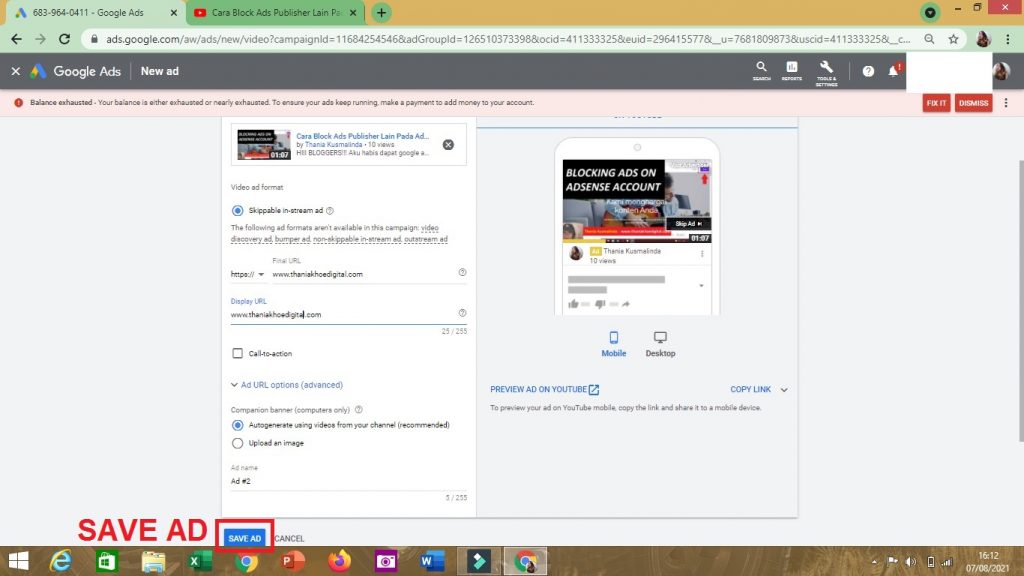 5. Kemudian, klik SAVE AD