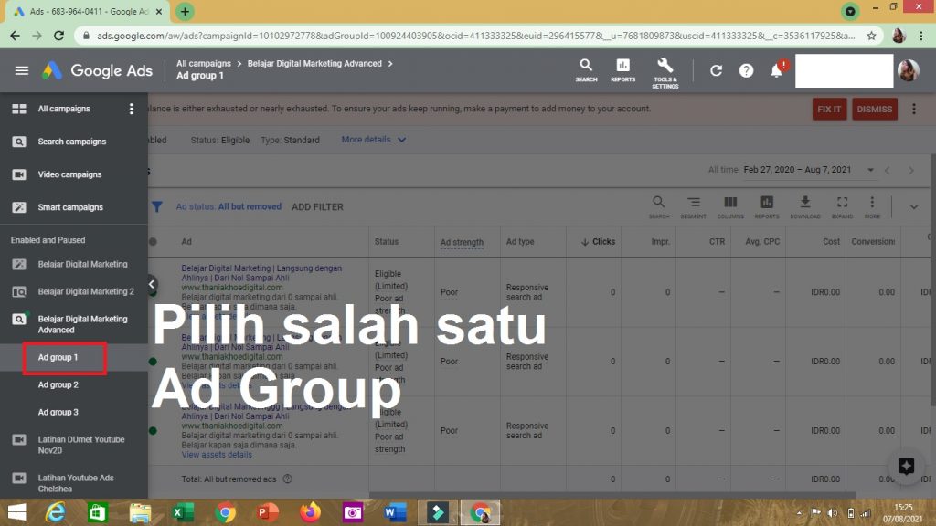 Nah, kamu bisa melihat mana performa Ad Group mu yang lebih bagus, dan mana yang tidak.