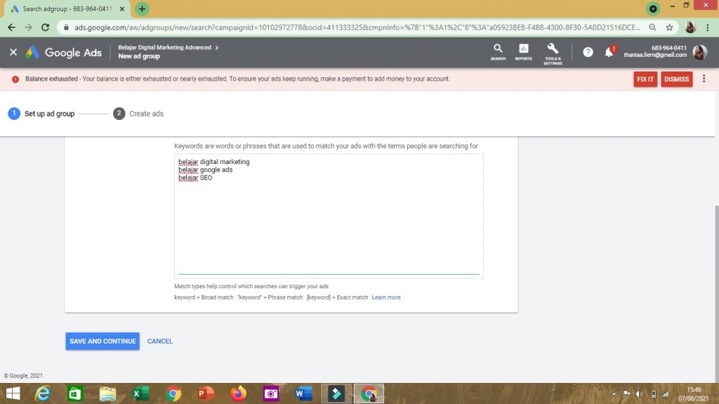 5. Kemudian, jadi deh, variasi Ad Group dalam 1 campaign