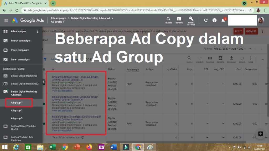 8. Kemudian, jadilah beberapa Ad Copy dalam satu Ad Group yang sama