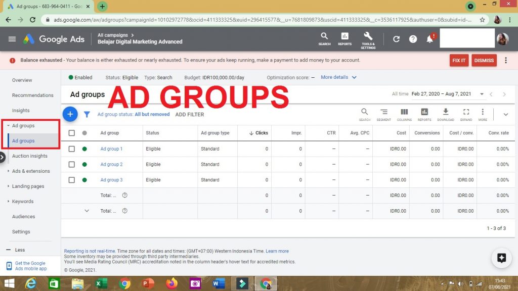 Nah, nantinya kamu akan bisa mengukur dan mengetahui mana Ad Group yang memiliki performa lebih bagus, dan mana yang tidak.