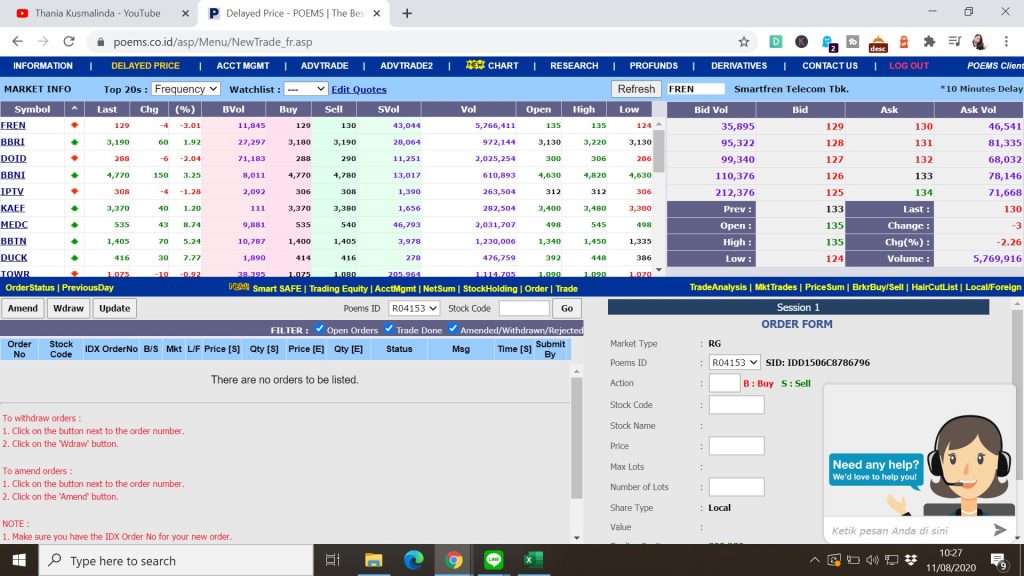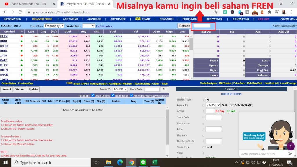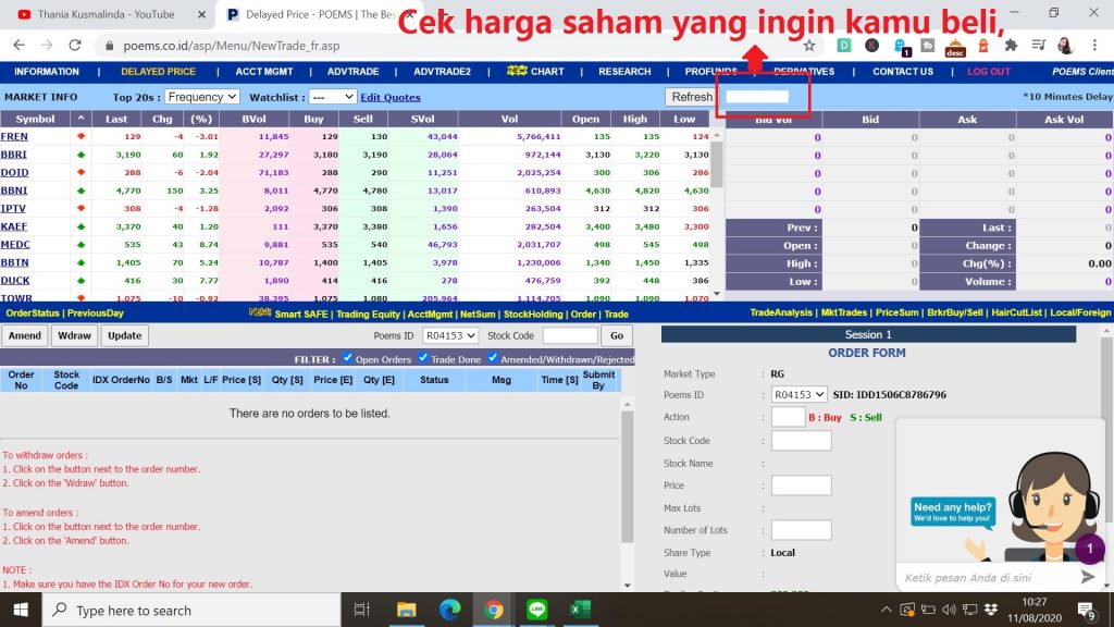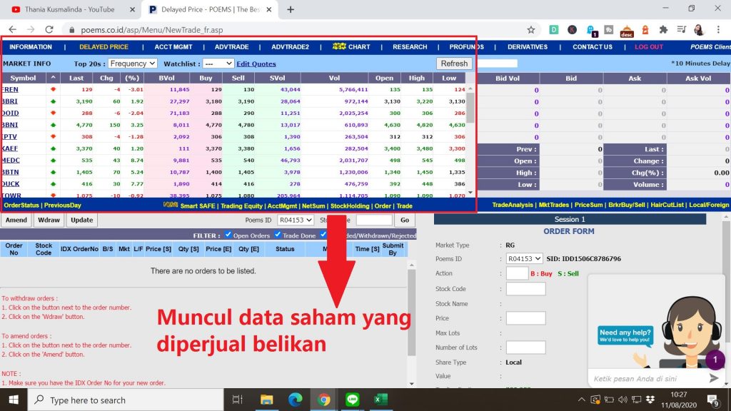 10. Kemudian, scroll lah ke kanan bawah (ke bagian kolom ORDER FORM) untuk membeli saham (bisa juga untuk menjual)