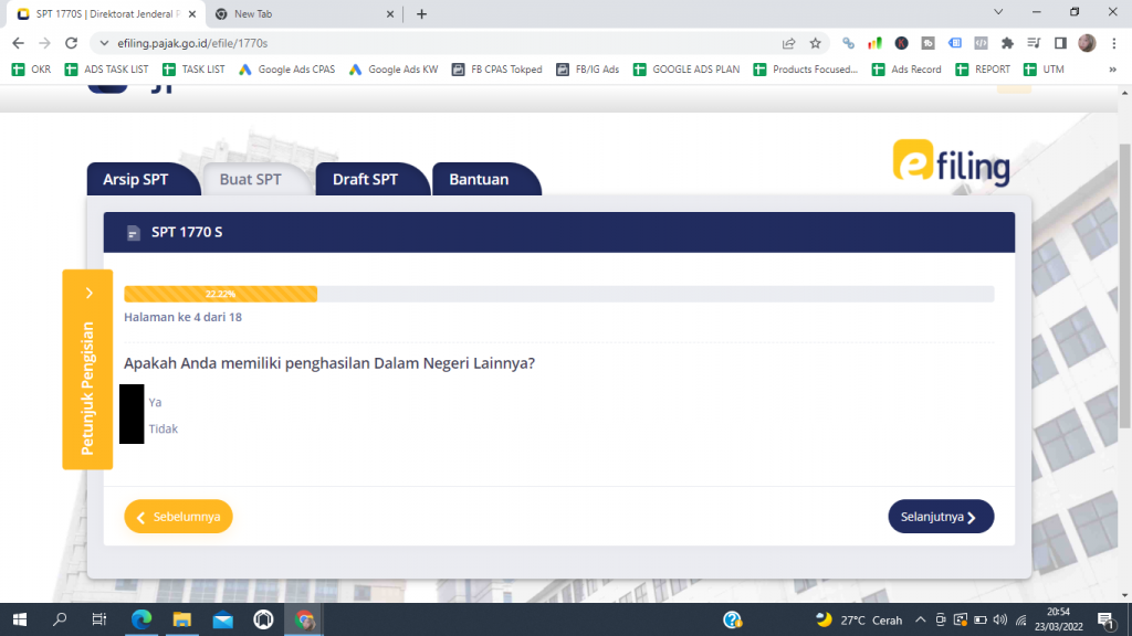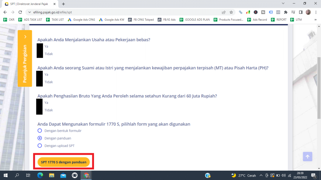 7. Isilah pertanyaan-pertanyaan yang muncul sesuai dengan kondisi kita, kemudian pilih bagaimana kita akan mengisi formulir 1770 S. Contoh di artikel kali ini ialah mengisi SPT 1770 S dengan panduan