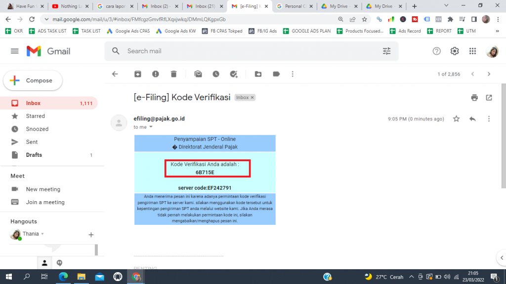 15. Kita akan dapat email berisi kode verifikasi. Ambil kode nya