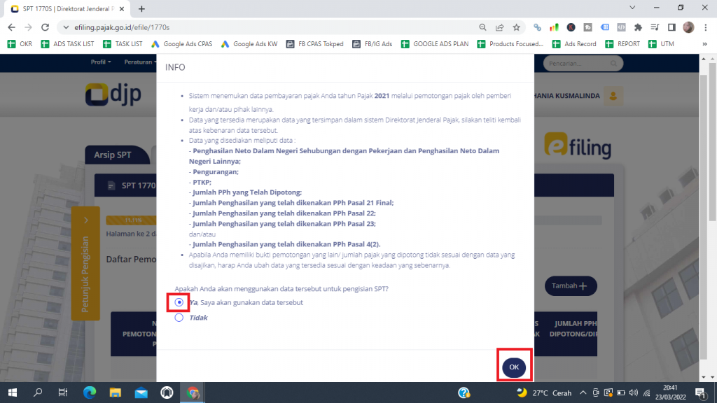 9. Bacalah info yang tertampil dengan baik, kemudian klik YA. Setelahnya, klik OK