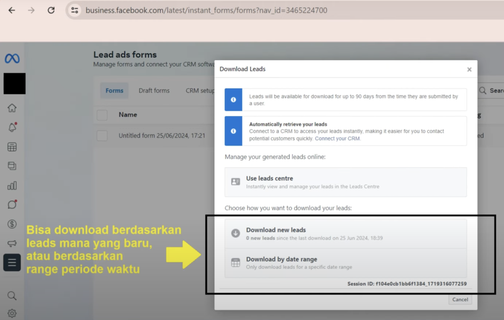 3. Data yang akan di-download bisa berdasarkan mana leads yang baru, dan mana leads yang akan di download berdasarkan range periode waktu-nya