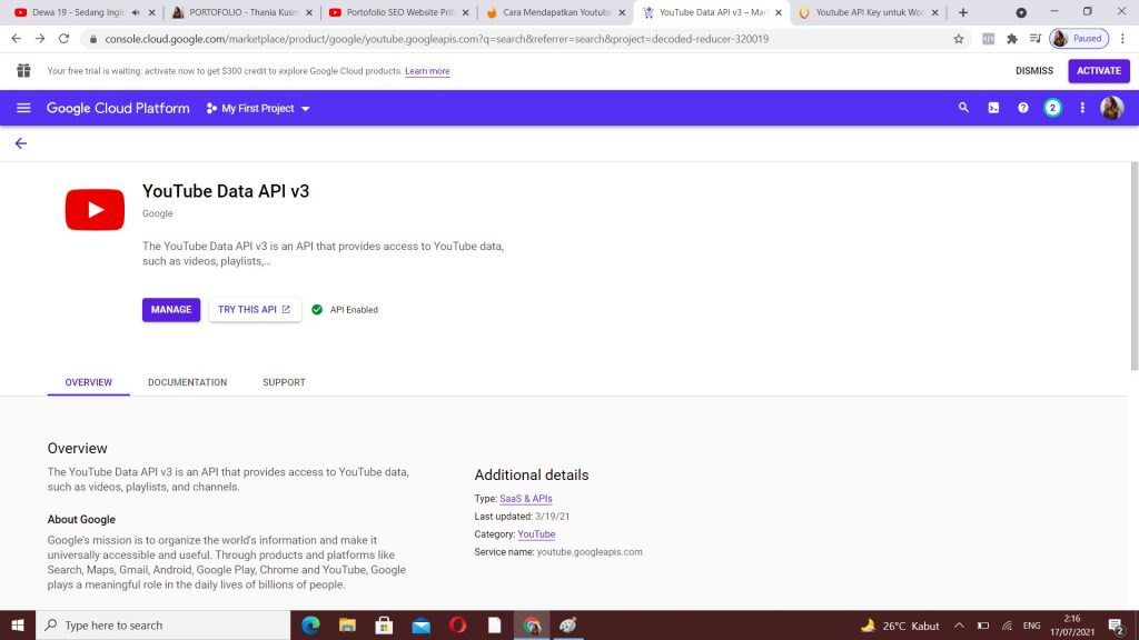 Cara Mendapatkan API Key Youtube dengan Google Cloud (tahun 2021) — Inilah cara mengetahui dan mendapatkan API Key youtube kita menggunakan google cloud. Yuk, langsung simak tutorialnya!