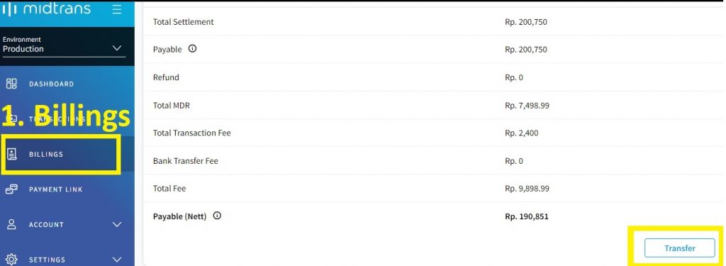14. Kemudian jika ingin melakukan penarikan dana, kita bisa klik ke bagian BILLINGS lalu klik TRANSFER