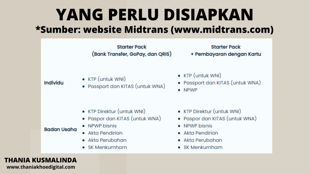 – Starter Pack (Bank Transfer, GoPay, dan QRIS) jika kita sebagai badan usaha: