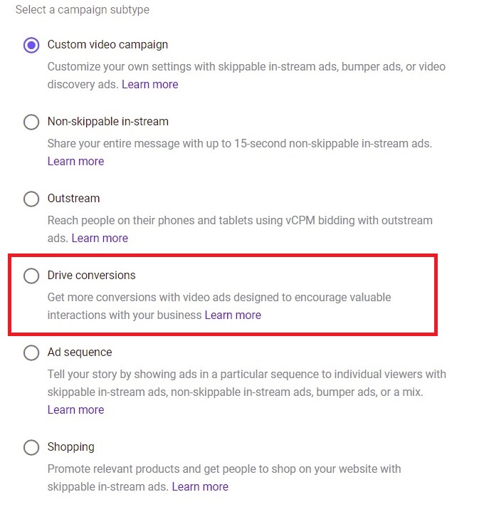 Drive conversions adalah jenis video ads yang di design untuk meningkatkan interaksi antara audience dengan advertiser.