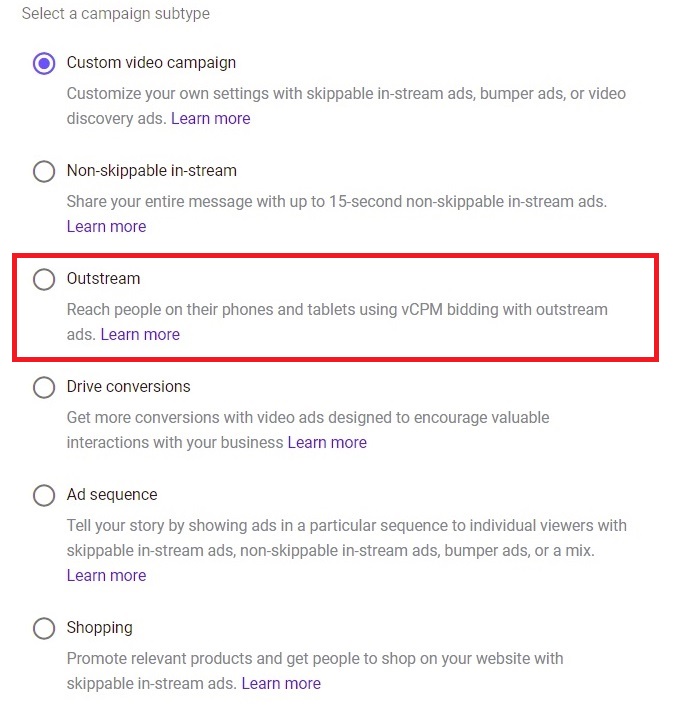 Outstream adalah jenis iklan dimana kamu bisa mengjangkau orang – orang yang menggunakan handphone dan tablet secara outstream (diluar VIDEO).