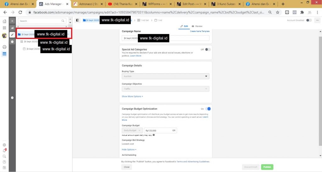 Nah, sekarang coba kita ulas penjelasan dari beliau yah, yaitu penerapannya dalam CAMPAIGN, AD SET, dan ADS.