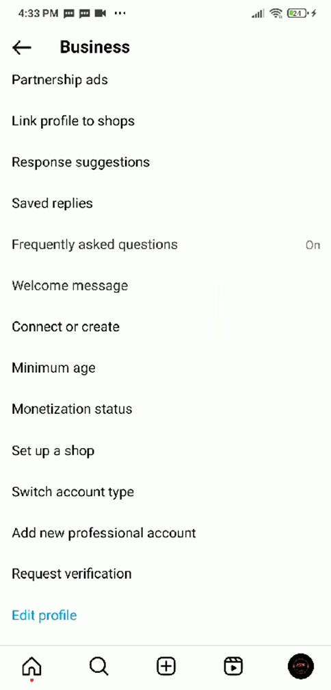 1. Pastikan akun instagram kita sudah menjadi instagram business. Klik tanda garis tiga di pojok kanan atas.