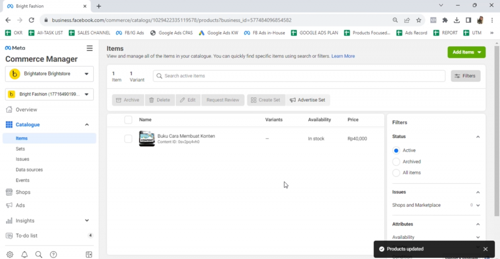 Dilanjutkan sampai instagram dan facebook page sudah terhubung, kemudian pastikan juga keduanya sudah terhubung dengan Business Manager – Business Center FB.
