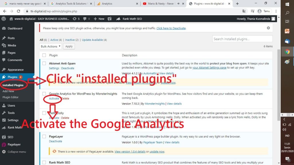 15. AKTIVASI – KAN GOOGLE ANALYTICS YANG TELAH TERINSTALL / TERPASANG DENGAN MENG – KLIK “ACTIVATE”