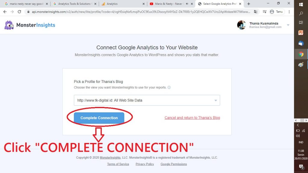 18. KLIK LAH “CONNECT MONSTERINSIGHTS”