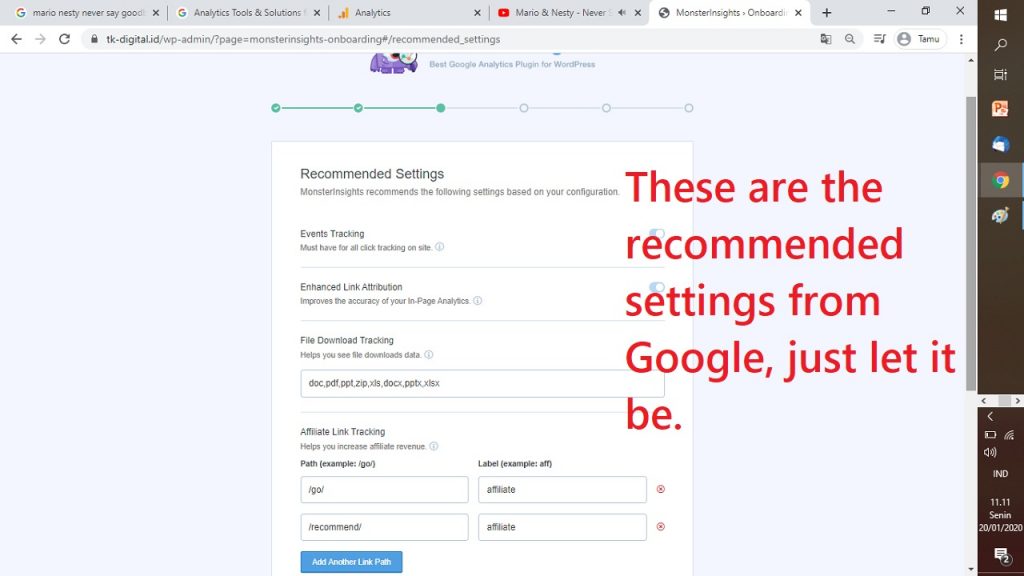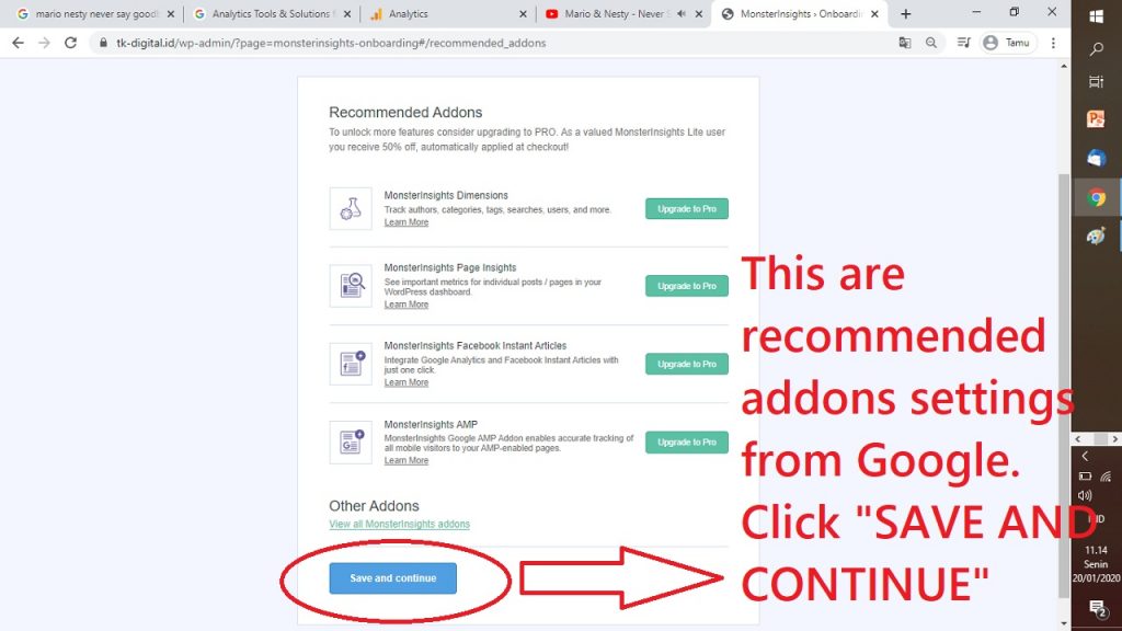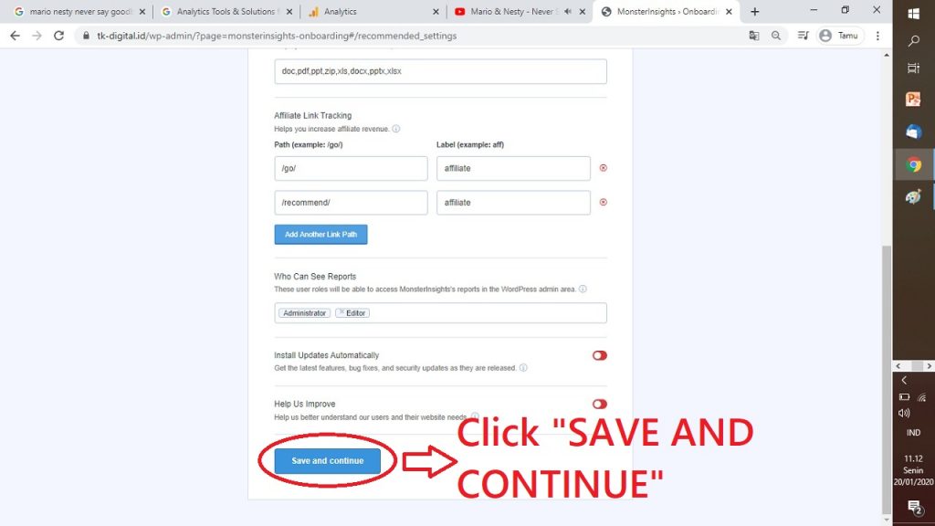 23. HALAMAN SELANJUTNYA MERUPAKAN SETTINGAN DARI SANA NYA, BIARKAN SAJA LALU KLIK “SAVE AND CONTINUE”