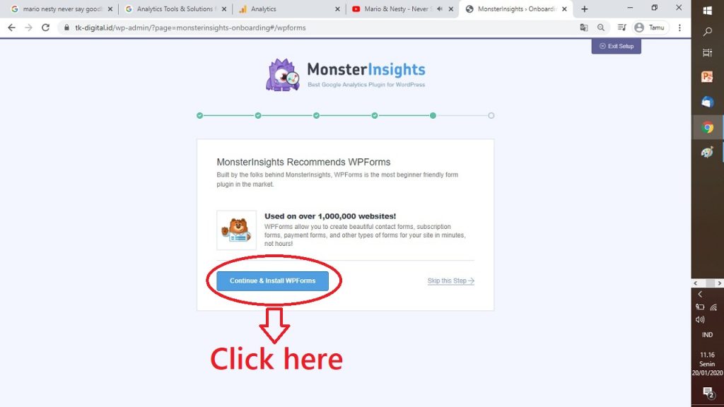 24. KLIK “CONTINUE & INSTALL WP FORMS”