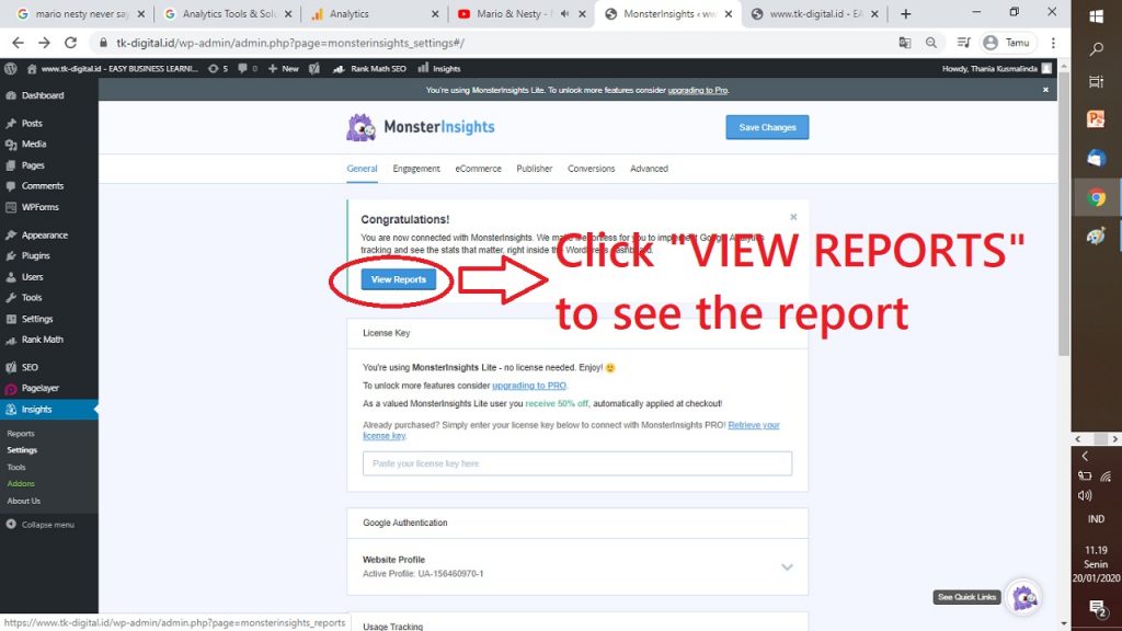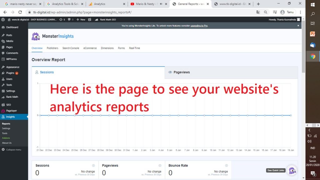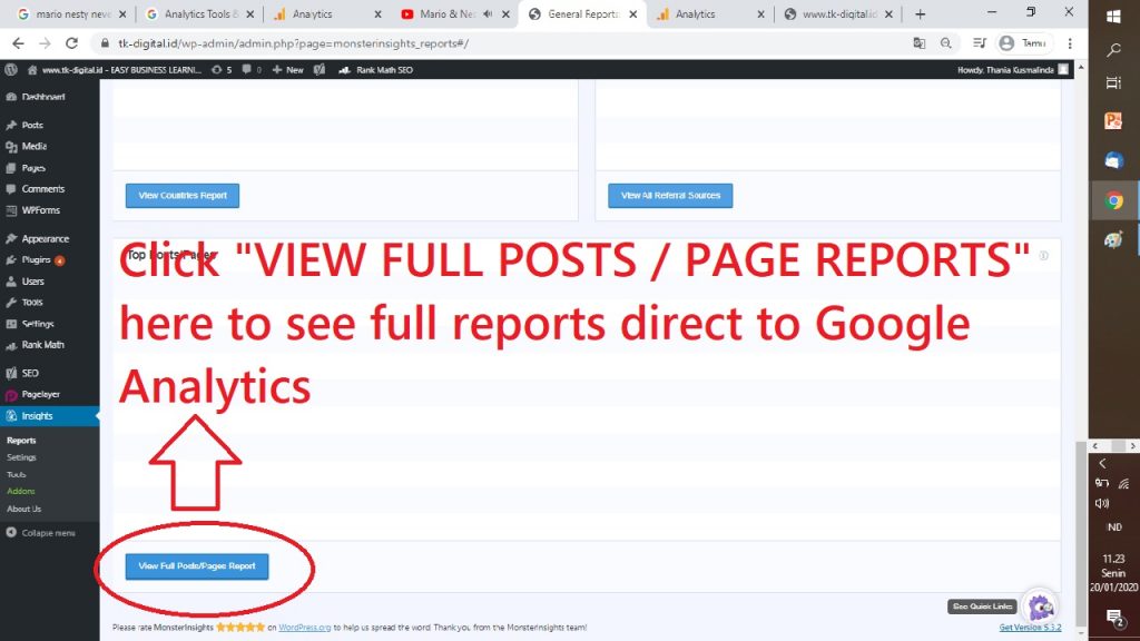 26. INI MERUPAKAN HALAMAN MONSTERINSIGHTS MU UNTUK MELIHAT LAPORAN ANALYTICS